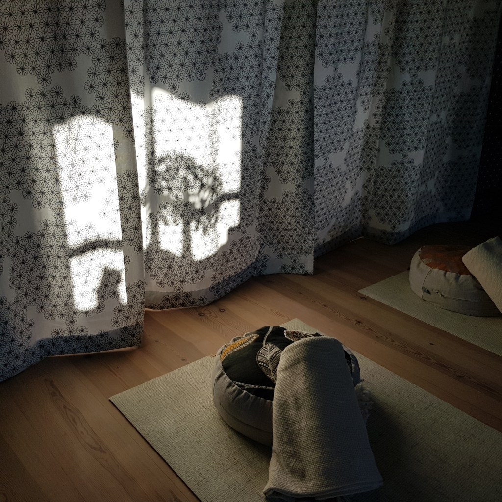 Kom gärna ombytt till yogakläder, det går att byta om på plats, om än något begränsat.