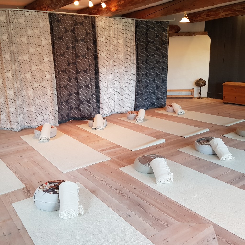 All utrustning finns, men ta gärna med egen yogamatta och/eller eget lammskinn.
