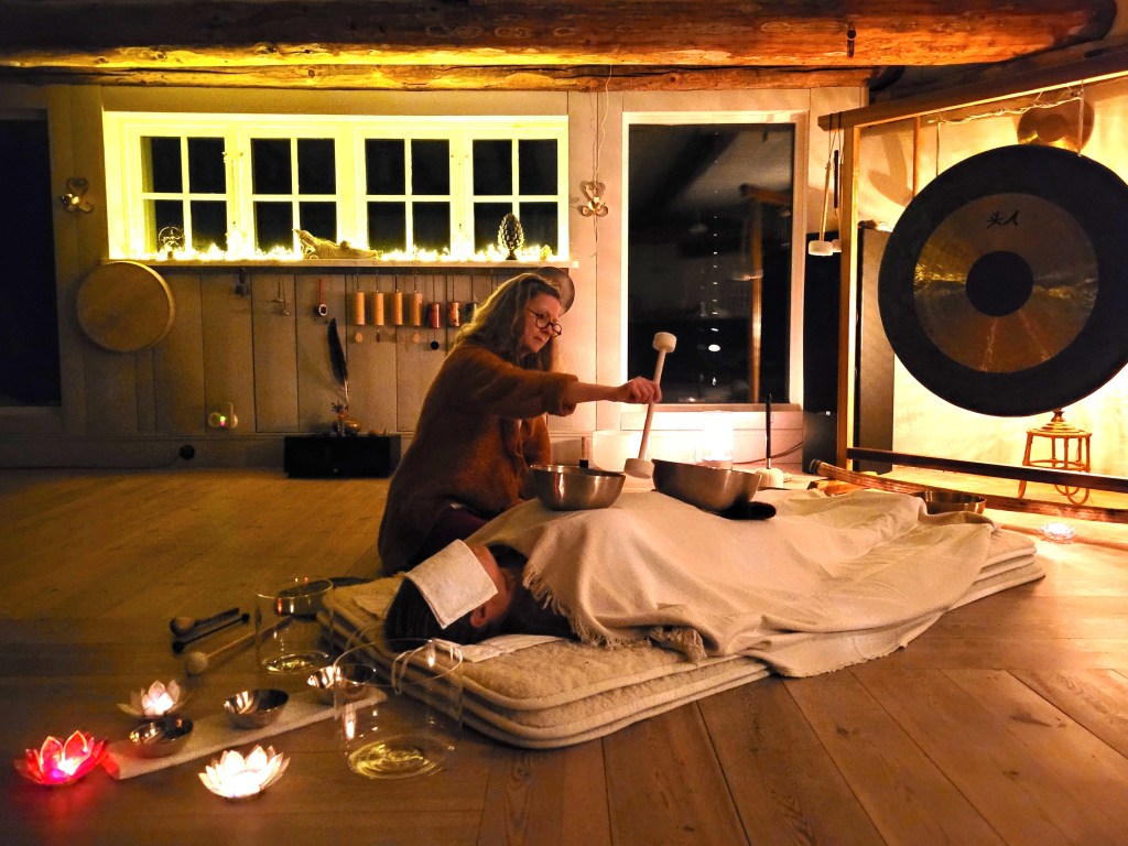 Klangmassage är en stillsam, men kraftfull behandling. Du är påklädd med en filt över dig och klang-/terapiskålarna placeras på och runt din kropp. När klangskålarna slås an skapas vibrationer i din kropp som når ner på cellnivå. Du består av stora mängder vätska, så även dina ca 37 biljoner[1] celler som är kroppens byggstenar, vilket betyder att du får en mjuk och mild cellmassage. Alla ljud omkring dig påverkar nervsystemet som i sin tur påverkar varje cell i din kropp. Klangskålarnas vibrationer har en lugnande effekt på nervsystemet och gör att du lätt kan komma ner i djup avslappning samtidigt som du fylls på med ny vitaliserande kraft. Först frigör klangens vibrationer gamla blockeringar, både fysiska, mentala, emotionella och själsliga, och sedan erbjuder vibrationerna en ny struktur. Vibrationerna, klangerna och övertonerna stimulerar och synkroniserar harmonin och livsenergin i din kropp. Klangmassage har sitt ursprung i de urgamla kunskaperna om klangens helande/läkande verkan som stimulerar och startar din egen helande självläkningskraft.